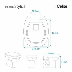 Compatível para uso em vaso sanitário Celite modelo Stylus com ou sem caixa acoplada.