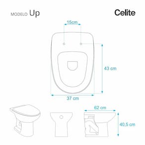 Compatível para uso em vaso sanitário Celite modelo Up com ou sem caixa acoplada.