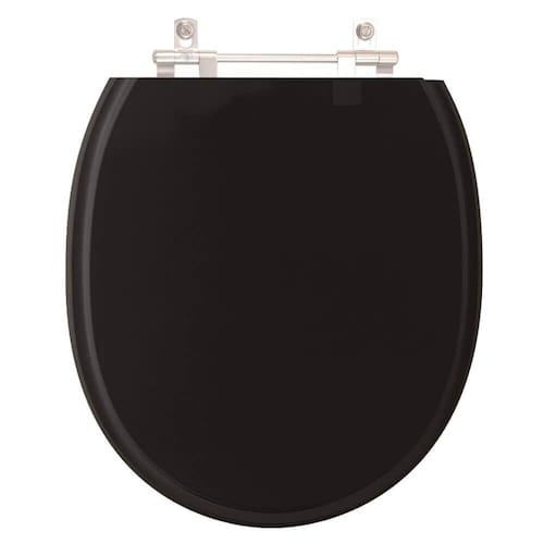 Este assento de vaso sanitário Village Preto é produzido em resina maciça de poliéster. O poliéster é uma resina semelhante ao acrílico, só que mais robusta / resistente. Por isso, é totalmente impermeável, pode ser lavado com água à vontade. Fácil de limpar. Não acumula sujeira.