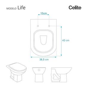 Compatível com o modelo Life da marca Celite, este assento se encaixa perfeitamente no vaso sanitário.