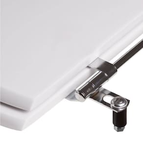 Instalação: Sem desmontar o produto, posicione sobre o vaso sanitário e encaixe os dois parafusos com as borrachas pretas dentro dos furos do vaso. Aperte com a chave de fenda no sentido horário até ficar firme.