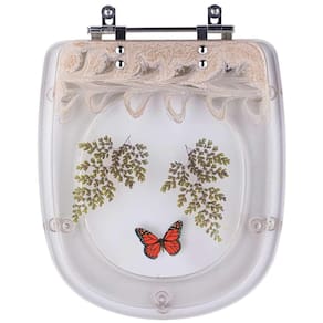 Assento sanitário para banheiro fabricado em Resina de Poliéster e tampa decorada de Avenca e Borboleta inédita e exclusiva. Acabamento de superfície polida com Alto Brilho. Ferragem Ultra Resistente e que não oxida. Elevadíssimo padrão de acabamento. Possui 10 calços de PVC distribuídos na tampa e no assento. Que possibilitam total estabilidade sobre a louça. Maciço em resina de Poliéster e totalmente Impermeável. Com excepcional Durabilidade, Design Específico para todos os tipos de louça.