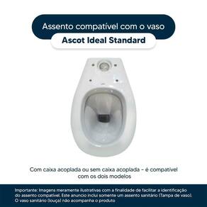 Detalhes e Cuidados Especiais: * Cor: Cinza Quartzo * Compatibilidade: Modelo Ascot da marca Ideal Standard * Conteúdo da Embalagem: Assento sanitário, parafusos de fixação e instruções de instalação. * Fabricante do Assento Sanitário: Pontto Lavabo.