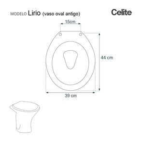 Detalhes e Cuidados Especiais: * Cor: Preto * Compatibilidade: Modelo Lirio da marca Celite * Conteúdo da Embalagem: Assento sanitário, parafusos de fixação e instruções de instalação. * Fabricante do Assento Sanitário: Pontto Lavabo.