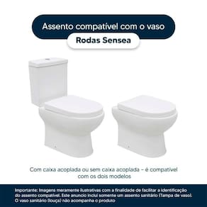 Detalhes e Cuidados Especiais: * Cor: Branco * Compatibilidade: Modelo Lyon da marca Sensea * Conteúdo da Embalagem: Assento sanitário, parafusos de fixação e instruções de instalação. * Fabricante do Assento Sanitário: Pontto Lavabo.