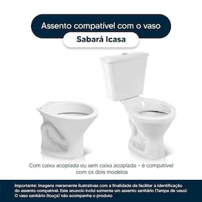 Detalhes e Cuidados Especiais: * Cor: Preto * Compatibilidade: Modelo Sabara da marca Icasa * Conteúdo da Embalagem: Assento sanitário, parafusos de fixação e instruções de instalação. * Fabricante do Assento Sanitário: Pontto Lavabo.