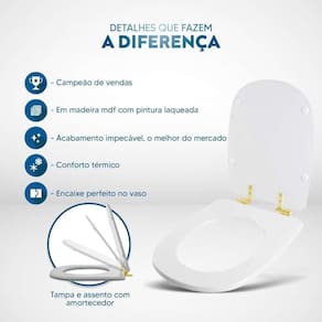 Durabilidade e Resistência: Fabricado em MDF com camadas de pintura laqueada, este assento oferece não apenas beleza, mas também conforto térmico e alta resistência. Seu acabamento impecável adiciona um toque de classe ao seu banheiro.