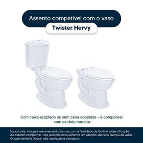 Detalhes e Cuidados Especiais: * Cor: Branco * Compatibilidade: Modelo Twister da marca Hervy * Conteúdo da Embalagem: Assento sanitário, parafusos de fixação e instruções de instalação. * Fabricante do Assento Sanitário: Pontto Lavabo.