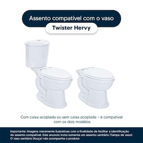 Detalhes e Cuidados Especiais: * Cor: Marfim * Compatibilidade: Modelo Twister da marca Hervy * Conteúdo da Embalagem: Assento sanitário, parafusos de fixação e instruções de instalação. * Fabricante do Assento Sanitário: Pontto Lavabo.