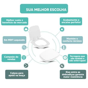 MATERIAL * Fabricado em madeira MDF com Pintura Laqueada na cor Branco * Mantém o conforto térmico do assento sanitário.