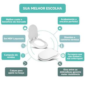 MATERIAL * Fabricado em madeira MDF com Pintura Laqueada na cor Branco * Mantém o conforto térmico do assento sanitário.
