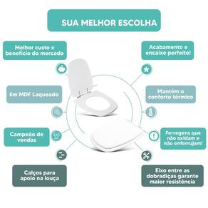 MATERIAL * Fabricado em madeira MDF com Pintura Laqueada na cor Branco * Mantém o conforto térmico do assento sanitário.