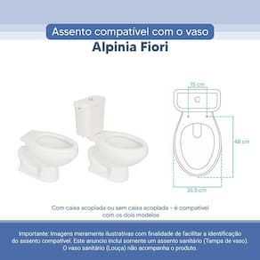 Assento Sanitário Tampa de Vaso Branco Resina Poliester Alpinia para bacia Fiori