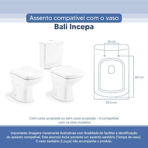 O Assento Sanitário Tampa de Vaso Branco Resina Poliester Bali para bacia Incepa é o que faltava para deixar seu banheiro ainda mais bonito.