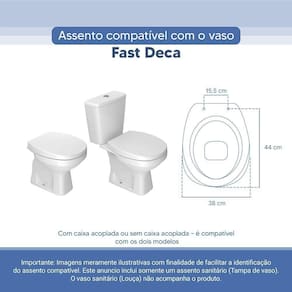 Assento Sanitário Tampa De Vaso Branco Resina Poliester Fast Para Bacia Deca
