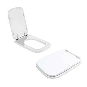 DIFERENCIAL * Possui calços que evitam o contato direto com a louça e que o assento deslize lateralmente. * Proporcionam maior estabilidade durante o uso. * Acabamento e encaixe perfeito no vaso sanitário. * Possui eixo entre as dobradiças, mantendo o assento sanitário firme na louça. * Sua ferragem metálica é super resistente e não oxida e nem enferruja.