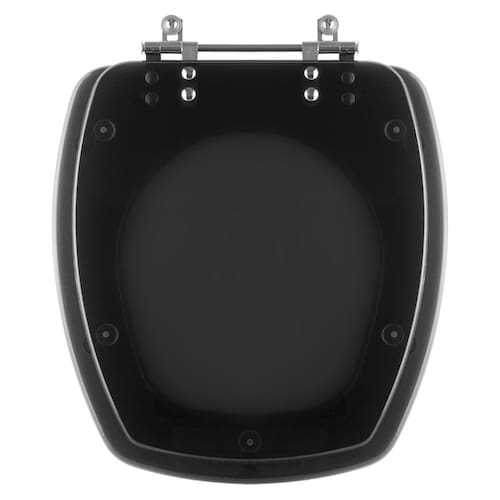 O encaixe do assento sanitário no vaso é feito por uma ferragem metálica que não oxida e não enferruja.