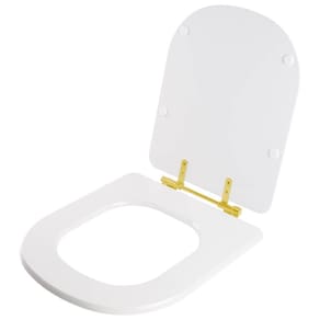 Dicas: Itens inclusos: assento sanitário em madeira MDF com pintura laqueada com ferragem dourada em alumínio anodizado.