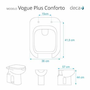 Compatível com o vaso sanitário Deca modelo Vogue Plus Conforto com ou sem caixa acoplada (é compatível com os dois tipos de vasos).