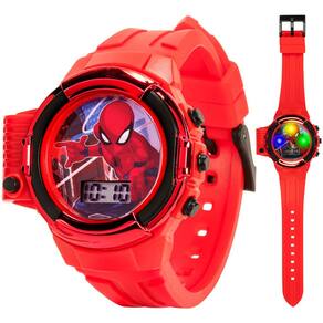 Relógio com lanterna do Homem-Aranha Marvel para crianças – divertido com visor LCD, lanterna de LED e pulseira de silicone durável, Vermelho/preto, Relógio infantil digital de plástico casual