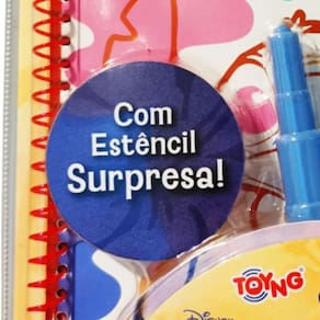 Conteúdo da embalagem: 04 canetas de sopro, 03 estênceis de papel, 01 bloco de adesivos para colorir e 01 bloco com 20 folhas para colorir