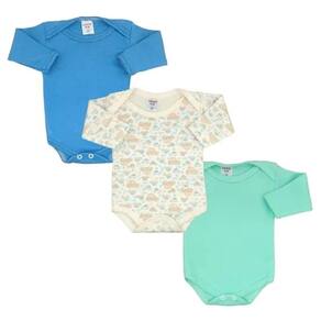 2x Body manga longa liso 1x Body manga longa estampado 1x Body manga curta liso 2x Body manga curta estampado 3x Calça mijão lisa vira pé 3x Calça mijão estampada vira pé 3x Macacão plush vira pé TOTAL 15 PEÇAS