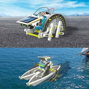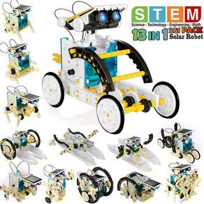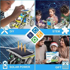 AVISO: Este produto pode conter pequenas peças, que são um risco de asfixia. Sugestão de supervisão de adultos. O que nos torna diferentes de outros produtos? O kit de robô solar 13 em 1 pode ser montado em 13 estilos diferentes que podem se mover em terra ou na água. Este kit de robô solar ensinará as crianças a projetar um robô que usa energia solar, desafiando a destreza manual e desenvolvendo a resolução de problemas e a autoconfiança. As crianças usam sua imaginação infinita para construir e criar seus próprios robôs. É um brinquedo perfeito para promover a aprendizagem mecânica e de engenharia na infância.