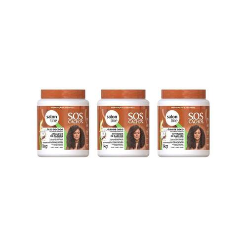 Na compra deste kit será enviado 03 unidades do ativador cachos salon line 1kg sos cachos óleo coco cada