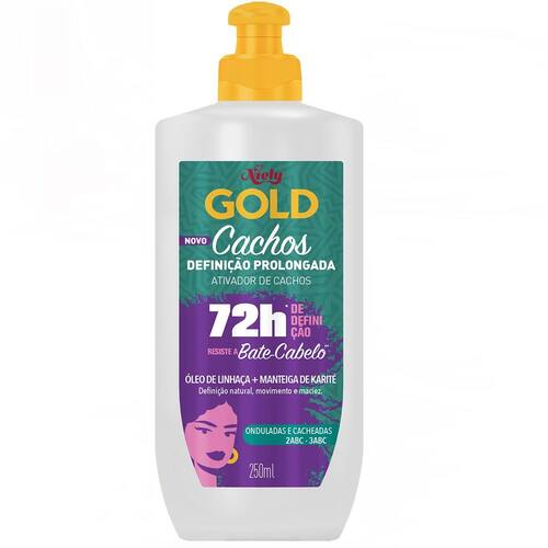 Ativador de cachos definição prolongada, 72 horas. Contém Óleo de Linhaça + Manteiga de Karité, definição natural, movimento e maciez. Onduladas e cacheadas.