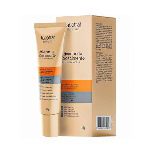 LABOTRAT Ativador de Crescimento de Cílios e Sobrancelhas - sem parabenos, não testado em animais, oftalmologicamente testado, nanotecnologia - promove o crescimento dos cílios e sobrancelhas, fortificando os fios. Sua fórmula foi desenvolvida com um complexo concentrado de ativos e nanocápsulas, que estimula a microcirculação e oxigenação dos bulbos capilares auxiliando o crescimento de novos pelos. Proporciona também o efeito alongador, volumoso e hidratante. Os testes comprovam 91% de crescimento de novos fios e 85% fios mais fortes e volumosos. forma novos fios; interrompe o clico de queda; fortalece a fibra capilar; aumento o fluxo sanguineo; evita aparecimento de fios brancos. LABOTRAT Ativador de Crescimento de Cílios e Sobrancelhas é um tratamento intensivo, estimula o crescimento e o fortalecimento dos fios dos cílios e sobrancelhas. Alonga e deixa os cílios mais espessos, restaura os fios, firmeza e volume. Fórmula com nanotecnologia: nano biotina: acelera o crescimento; nano cafeína: estimula o cresimento; nano pantenol: revitaliza os fios; nano silanetriol: recupera a densidade dos fios.