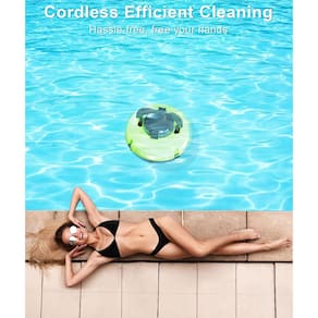 Com sua bateria de longa duração e design leve, este limpador de piscina robótico sem fio é a ferramenta perfeita para facilitar a manutenção da piscina. Você pode sentar, relaxar e ver sua piscina brilhar enquanto toma uma pina colada porque você merece!