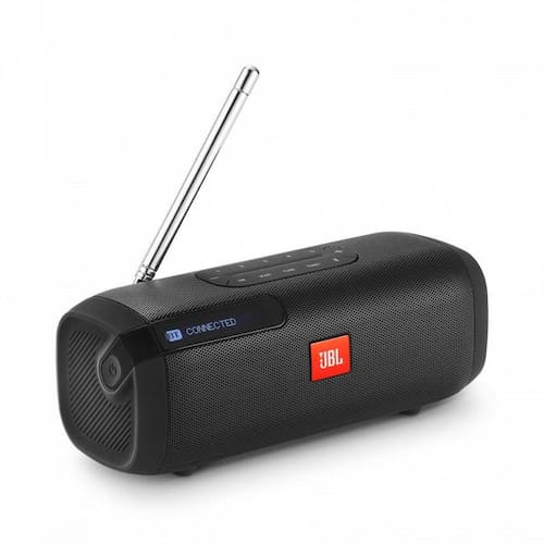 O JBL Tuner FM é uma caixa de som portátil, com Bluetooth e poderoso e cristalino som de rádio FM. Você pode agora apreciar suas músicas e estações de rádio favoritas em qualquer lugar, graças ao seu design compacto e uma bateria recarregável, que permite até oito horas de reprodução. Ele também possui uma tela de rolagem de fácil visualização, com LCD e iluminação de fundo, e cinco botões predefinidos diretos FM, para sintonizar rapidamente suas estações favoritas, o que o torna seu companheiro ideal para ouvir música por aí.