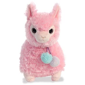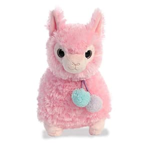 Fofo e robusto, embora esta Lhama seja pequena, ela embala muito drama. Lichia é uma bela lhama rosa e ela tem um colar pom pom azul e roxo.