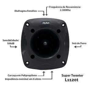 O Super Tweeter 2LS00120T da Leson é a escolha ideal para aprimorar a qualidade sonora do seu veículo. Com uma potência de 120W RMS e uma impedância de 8 Ohms, este super tweeter foi projetado especificamente para reproduzir os sons mais agudos com clareza e precisão.