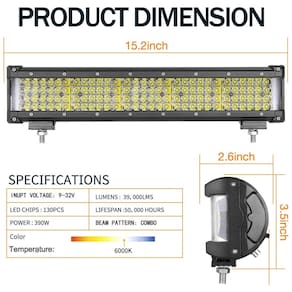 SUPER BRILHO A barra de luz LED de com LEDs de alto grau QUAD fileira 130pcs exclusivos e design de feixe de luz e disparadores laterais duplos, emite 390 watts e 39.000 lumens brutos de luz superbrilhante de 6000k, ilumina com eficiência a frente e os dois lados estrada, transforme a noite em dia.