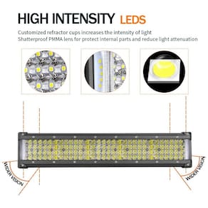DESIGN PERFEITO A luz de condução LED projeta um feixe focal de 35 torna a barra de LED mais brilhante e mais concentrada para iluminar a longa distância, combinada com os disparadores laterais extras para uma iluminação total 180 mais ampla, perfeitamente para alta velocidade ou qualquer cena onde você precisar. Os suportes de montagem de aço inoxidável duráveis podem ser ajustados dentro de 45 .