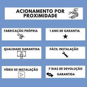 Acionador de bebedouro com sensor de proximidadeFácil instalação 1 ano de garantiaProduto 100% nacionalDespachamos em 24 horasSomos fabricantes. Acionador de bebedouro industrial sensorizado é um produto nacional com garantia de até 1 ano para qualquer defeito de fabricação e assistência técnica. O produto é composto por 1 módulo eletrônico, 01 sensor que opera em ambientes internos e externos, 01 fonte bivolt e 01 válvula 12v.Ideal para bebedouros industriais onde o fluxo de pessoas é grande como, fábrica, refeitórios, pátios, ginásios de esportes, hospitais entre outros. De fácil instalação: basta remover as torneiras e efetuar a instalação dos acionador sensorizado, assim, evita a contaminação cruzada, reunindo praticidade e conforto. Baixíssimo custo de manutenção. Os acionadores se adaptam facilmente a diversos modelos de bebedouros industriais encontrados no mercado nacional. Dispensa o contato manual, pois é acionada automaticamente por meio de sensores de presença, liberando a água com a aproximação do copo ou sqeeze nbr 9050 . Economia: utilizando o acionador de bebedouro industrial sensorizado, você terá somente a água que necessita, assim evitará o desperdício. Meio ambiente: utilizando o acionador de bebedouro industrial sensorizado, você estará contribuindo para um mundo mais sustentável. Instalação: · feche o registro;· rosquear o lado macho da válvula da torneira eletrônica no bebedouro entrada da água no painel frontal, deixando saída da água para baixo;· conectar a alimentação no módulo fixado dentro da caixa acrilica;· conectar o cabo da alimentação da válvula;· colocar a caixa acrílica com o furo para baixo;· rosquear o acabamento da saída de água com a canopla saída da água até que a caixa acrílica fique fixada. Informações técnicas: · fonte de alimentação:127/220v com saída de 12v/1a;· conexão roscável de ½ polegada;· consumo: 0,3w em repouso e 6,6w quando acionada;· eletroválvula com membrana atóxica.
