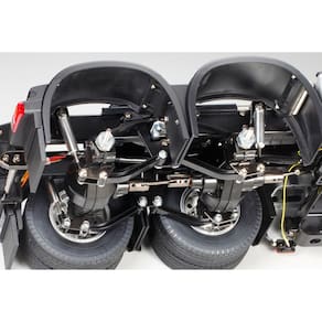 Highly-realistic suspension recreated with metal leaf springs and friction dampers.