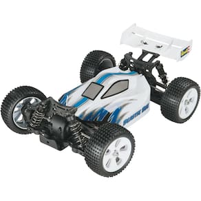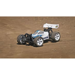 Movimentação: Quatro rodas Motor: tamanho 370 escovado Rádio: 2,4 GHz com direção proporcional Bateria: NiMH Carregador de bateria: tipo de parede AC Corpo: Plástico com asa traseira Suspensão: Independente Choques: Corpo de plástico Pneus: Pin Spike Rodas: Plástico, cor branca