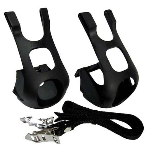 Par de firma pés com correias. Para pedais Wellgo com furação para firma pé. Fabricado em nylon de alta resistência. Na cor preta. Recomendado para bicicletas de fitness. Acompanha parafusos para fixação.
