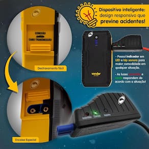 Auxiliar Partida Portátil 12V Vonder Para Carros, Motos, Lanchas Com Lanterna Usb Descrição: Extremamente portátil e fácil de usar, o auxiliar de partida portátil Vonder é ideal para emergências, servindo também como carregador portátil de smartphones ou dispositivos que tenham alimentação USB. possui lanterna de LED de alta luminosidade, além de garras inteligentes que protegem contra ligações de polaridade invertida ou sobrecarga. indicado para auxiliar na partida de veículos em situações com baixo nível de carga da bateria ou totalmente descarregada, com capacidade de aproximadamente até 20 partidas seguindo as orientações do manual . Indicado somente para veículos com baterias de 12 V com motor a gasolina ou etanol de até 4 L 4.000 cc . Benefícios: - Prático e portátil: estojo incluso para transporte; - Power Bank: use para carregar seus dispositivos quando precisar; - Garras inteligentes: Evite acidentes em situações extremas. Características Técnicas: - Modelo: APV 10000 - Capacidade da bateria do auxiliar de partida: 10.000 mAh; - Ciclos de carga: Aproximadamente 1.000 ciclos - Corrente máxima do auxiliar de partida: 700 A - Corrente nominal do auxiliar de partida: 250 A - Temperatura de operação: -20 a 60 - Tempo de recarga do auxiliar de partida: Aproximadamente 3 horas - Tipo da bateria do auxiliar de partida: Polímero de lítio - Tipo de entrada do auxiliar de partida: 5 V DC - 3 A / USB tipo C - Tipo de saída do auxiliar de partida: 2 saídas USB 5 V DC / 2,4 A e 1 saída 12 V DC Auxiliar de partida Itens Inclusos: - 1 Auxiliar de partida. - 1 cabo de transmissão - 1 cabo USB tipo C - 1 fonte para carregamento 100 V- 240 V - 1 estojo em lona. : legal: 90 dias + contratual: 3 meses; A NÃO cobre erros por MAU uso. Marca: Não Informado Ean: 7893946839796
