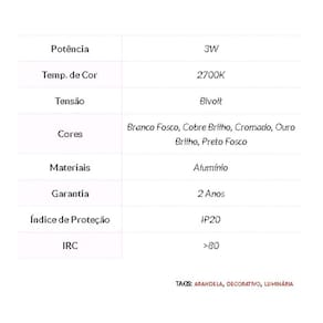 AVANT ARANDELA LED LETTURA 2700K 3W AMARELA COBRE BRILHOSO