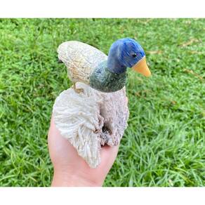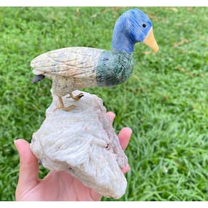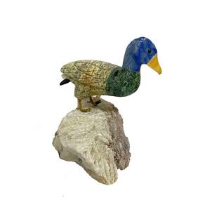 Amostra de Ave esculpida artesanalmente em pedra semipreciosa natural (minerais variados).