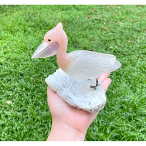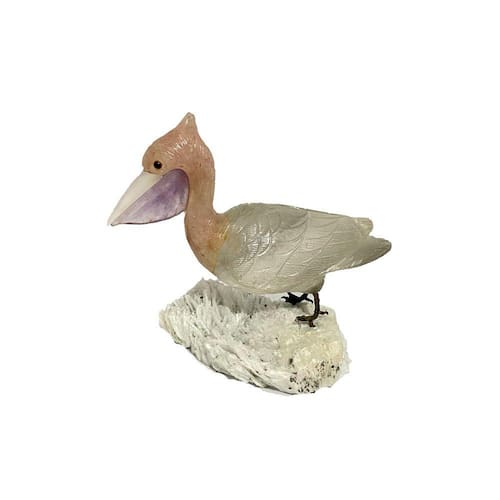 Amostra de Ave esculpida artesanalmente em pedra semipreciosa natural (minerais variados).