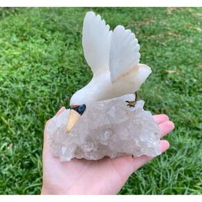 Amostra de Ave esculpida artesanalmente em pedra semipreciosa natural (minerais variados).