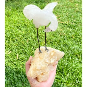 Amostra de Ave esculpida artesanalmente em pedra semipreciosa natural (minerais variados).