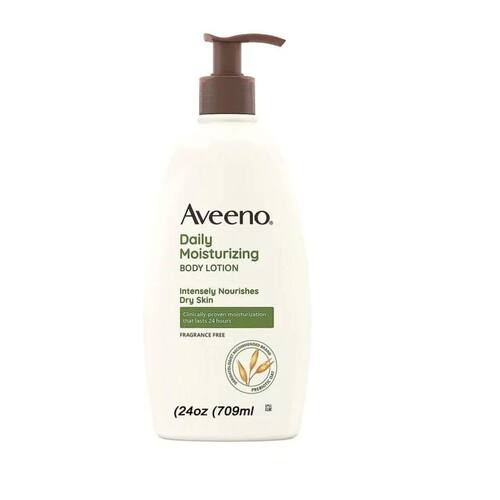 Aveeno Daily Moisturizing 709ml Hidratação Corporal 24 Horas A Loção Corporal Hidratante Diária Aveeno com fórmula de Aveia Prebiótica nutre intensamente a pele seca. Formulada com aveia prebiótica , a loção sem fragrância tem hidratação clinicamente comprovada que dura 24 horas. Esta loção corporal diária nutre e ajuda a repor a barreira natural de hidratação da pele. A fórmula única de aveia prebiótica é rapidamente absorvida e nutre a pele seca com hidratação, deixando a pele macia, bonita e com aparência saudável. A fórmula suave da Loção Hidratante Diária Aveeno não contém fragrâncias, parabenos ou corantes. Testada contra alergias e não é oleosa, não comedogênica e é suave o suficiente para uso diário como parte de uma rotina regular de cuidados com a pele e beleza. Para usar, aplique diariamente quantas vezes for necessário. Aveeno Loção Corporal Hidratante Diária com aveia prebiótica nutre intensamente a pele seca Loção suave, adequada para peles sensíveis, possui hidratação clinicamente comprovada que dura 24 horas. A loção corporal hidratante nutre e ajuda a repor a barreira natural de hidratação da pele Apresentando uma fórmula de rápida absorção que deixa sua pele macia, bonita e com aparência saudável Garrafa feita com 30% de plástico reciclável. Marca: Não Informado
