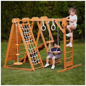 O Avenlur Chestnut é um inovador playground dobrável para uso interno e externo, oferecendo diversão e oportunidades de aprendizado infinitas para crianças a partir de 26 meses. Este parque infantil 7 em 1, no estilo Montessori e Waldorf, apresenta escorregador, parede de escalada, balanço, barra de macaco, rede de escalada de parede e uma escada de madeira. Possui um design que economiza espaço sem comprometer a qualidade ou segurança. QUALIDADE PREMIUM: O Chestnut é feito com 100% de Cedro, uma madeira de alta qualidade projetada para resistir aos elementos externos. Com peças de madeira mais espessas que produtos similares, uma camada adicional de verniz e ferragens livres de ferrugem, o Chestnut é robusto, resistente e construído para durar anos. SEGURANÇA GARANTIDA: Na Avenlur, levamos nossa responsabilidade com a segurança a sério. Nossos produtos passam por rigorosos controles de qualidade na produção e são certificados em segurança e composição. O Chestnut é feito com tintas e selantes não tóxicos. O uso de materiais não tóxicos proporciona tranquilidade aos pais, sabendo que seus filhos não estão expostos a substâncias químicas prejudiciais ao desfrutar do conjunto de balanço. CARACTERÍSTICAS DESENVOLVIMENTAIS: O Chestnut incentiva as crianças a explorar, aprender, desenvolver suas habilidades físicas, cognitivas e sociais. É um playground no estilo Montessori que promove independência, constrói força no corpo superior, fortalece as habilidades motoras e melhora a coordenação do equilíbrio. O Chestnut também promove o jogo livre, o que estimula a criatividade e a imaginação. Seu filho pode testar com segurança seus limites, construir confiança e se divertir por horas. MONTAGEM E ARMAZENAMENTO FÁCEIS: Não é necessária instalação profissional e instruções detalhadas são fornecidas. Ele se dobra facilmente para criar mais espaço. As barras de macaco podem se estender ou fechar contra a estrutura como uma escada. O Chestnut é perfeito para uso ao ar livre e em ambientes internos, como apartamentos, casas pequenas e salas de brinquedo. Montagem e armazenamento sem esforço para pais ocupados.