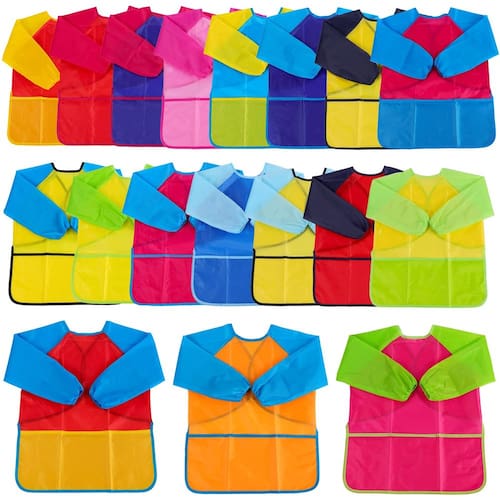 Características dos aventais artísticos infantis: Toda mãe fica irritada com sujeira e manchas nas roupas das crianças após a alimentação ou pintura. Mas com o avental infantil Zkptops, eles não precisam mais se preocupar. Este avental de arte infantil será um presente muito fabuloso para mães ou crianças liberarem o peso das tarefas domésticas das mães ou ajudar as crianças a trazer sua criação em brincadeiras completas. Os aventais infantis são adequados para cozinha, sala de aula, evento comunitário, artesanato e atividade de pintura artística, festa de aniversário, para evitar deixar pintura ou resíduos indesejados nas roupas infantis. Perfeito para limpar, servir, pintar e fazer artesanato etc. Nosso macacão infantil tem mangas compridas para melhor proteção e o design de fecho ajustável para uso conveniente. Além disso, os 3 bolsos frontais do avental infantil ajudam as crianças a segurar caneta de água, tinta, lanches, toalhas de papel e outros itens. Especificações dos aventais artísticos infantis: material de smocks de arte infantil: poliéster Cor do avental de arte infantil: azul, rosa, amarelo smocks de arte para crianças: 23,2 x 17,3 polegadas O pacote inclui de smocks artísticos infantis: 18 peças, avental de arte infantil Observação para crianças artísticas: 1. Devido à medição manual, considere uma diferença de 0,1 a 0,3 cm. Obrigado. 2. Entenda que, devido à diferença na irradiação de luz ou na tela do computador, não posso garantir que as fotos e as cores reais sejam 100% iguais. - QUALIDADE PREMIUM E SEGURA: Nossas jalecos de pintura infantis são feitos de material de poliéster liso, à prova d'água, livre de BPA, seguros e não tóxicos. As jaleiras infantis podem ser usadas repetidamente e fáceis de limpar com água e sabão - DESIGN DE PROTEÇÃO EFETIVA: nossos aventais de pintura infantil são feitos de arte para crianças com mangas compridas para melhor proteção e design de fecho de fecho aderente ajustável para uso conveniente. Além disso, os 3 bolsos frontais da bata de arte infantil ajudam as crianças a segurar canetas de água, tinta, lanches, toalhas de papel e outros itens - TAMANHO GERAL E À PROVA D'ÁGUA: A bata de arte infantil mede 59 x 44 cm, manga inteira. Tamanho único adequado para crianças de 2 a 7 anos para pintura, culinária e outras atividades recreativas. Os aventais de pintura infantis são à prova d'água - PRESENTE PERFEITO: Nossas jalecos infantis são ideais para tintas de aquarela e esponjas infantis. Nossas baquetas de arte à prova d'água para pintura infantil são ótimas para crianças que amam pintar e desenhar e podem protegê-las de manchas de roupas - ATENDIMENTO AO CLIENTE: se tiver alguma dúvida com sua compra. Adoraríamos consertar