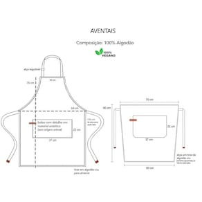 Contem: 1 Avental de Cintura Tamanho: 70 x 60 cm 1 Avental Corpo Inteiro Tamanho: 76 x 64 cm Material: 100% Algodao Marca: CASACHA